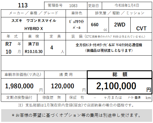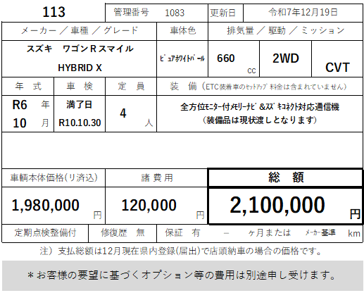 113 スズキ ワゴンR スマイル HYBRID X 走行10km