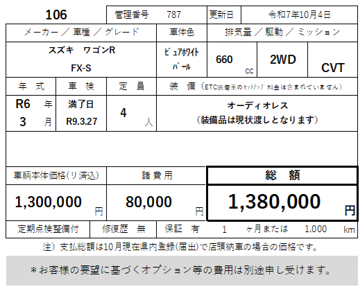 106 スズキ ワゴンR HYBRID FX-S 走行10km