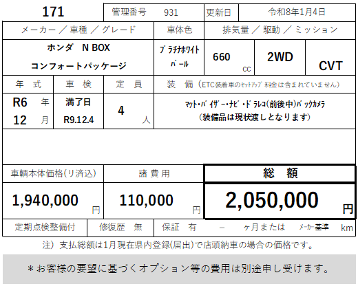 171 ホンダ N BOX コンフォートパッケージ ホンダセンシング 走行10km