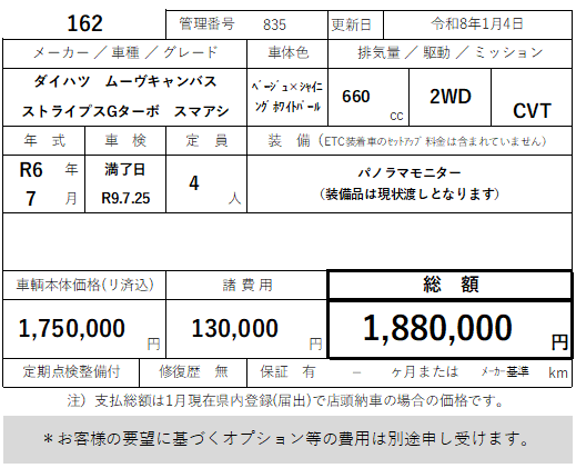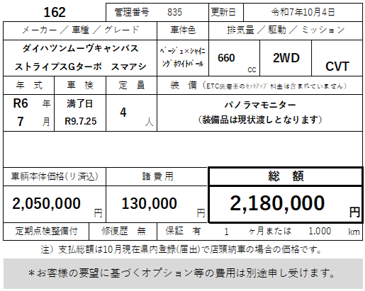 162 ダイハツ ムーヴキャンバス ストライプス Gターボ スマアシ 走行10km