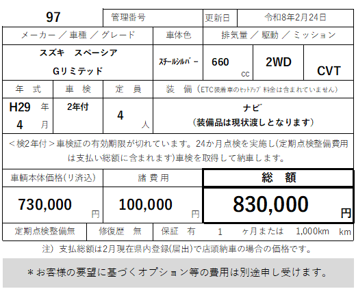 97 スズキ スペーシア Gリミテッド 走行30,000km
