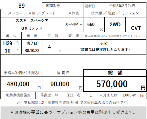 89 スズキ スペーシア Gリミテッド 走行 85,000km