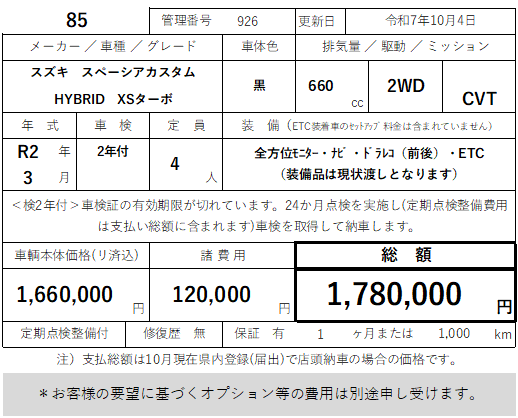 85 スズキ スペーシアカスタム HYBRID XSターボ 走行35,400km