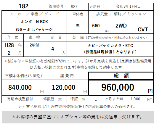 182 ホンダ N BOX カスタム Gターボ Lパッケージ 走行51,200km