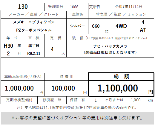 130 スズキ エブリィワゴン 4WD 4AT 走行54,00km